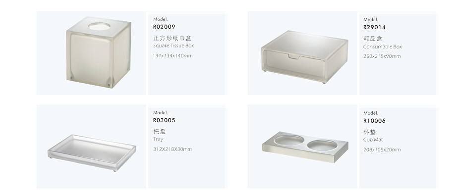 PRODUCTS:RESIN SERVICE DIRECTORY FOLDER, RESIN NOTEPAD BOX, RESIN RECTANGLE TISSUE BOX COVER, RESIN SQUARE TISSUE BOX COVER, RESIN AMENITY BOX, RESIN REMOTE CONTROLLER HOLDER, RESIN MOUTH CUP, RESIN AMENITY TRAY, RESIN SOAP DISH, RESIN SALT CUP, RESIN DUST BIN, RESIN CONSUMABLE BOX