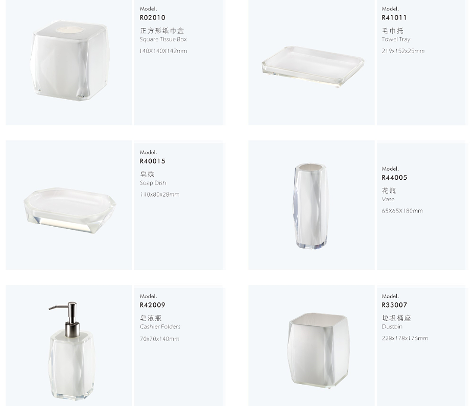 PRODUCTS:RESIN AMENITY BOX, RESIN TISSUE BOX COVER, RESIN TOWEL TRAY, RESIN VASE, RESIN SALT CUP, REIN DUST BIN, RESIN SOAP DISH