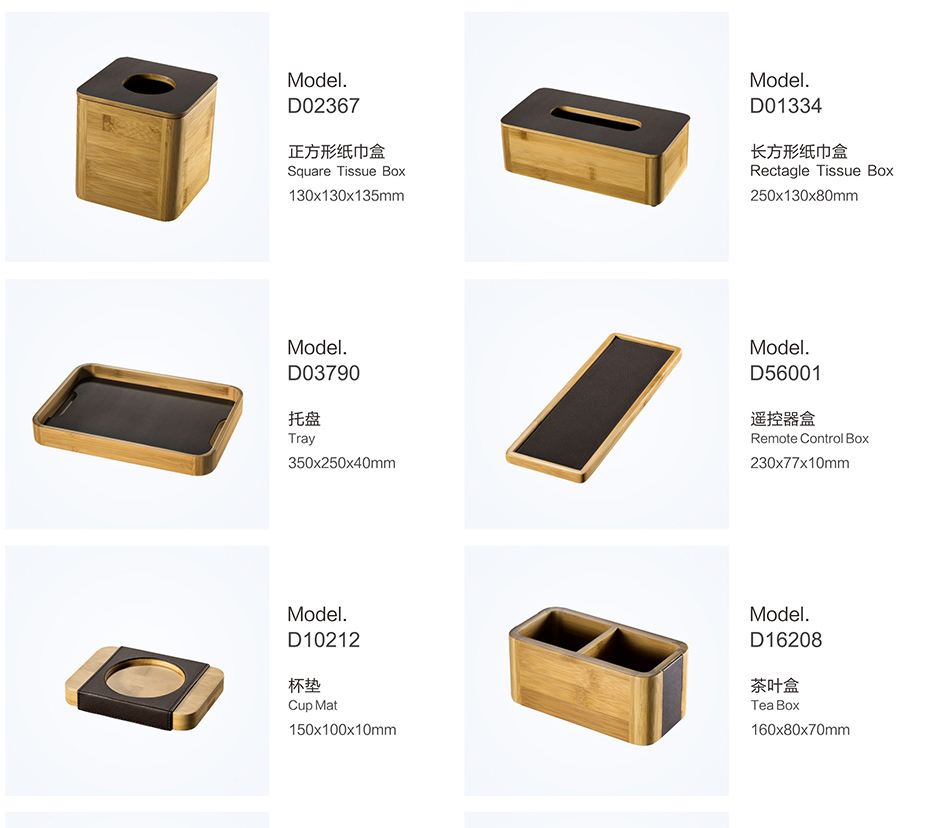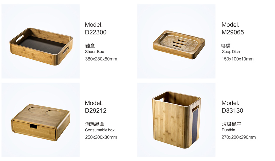 PRODUCTS:BAMBOO SERVICE DIRECTORY FOLDER, BAMBOO NOTE PAD, BAMBOO TISSUE BOX COVER, BAMBOO TRAY, BAMBOO REMOTE CONTROLLER HOLDER, BAMBOO CUP MAT, BAMBOO TEA BOX, BAMBOO SHOE BASKET, BAMBOO SOAP DISH, BAMBOO AMENITY BOX, BAMBOO DUST BIN