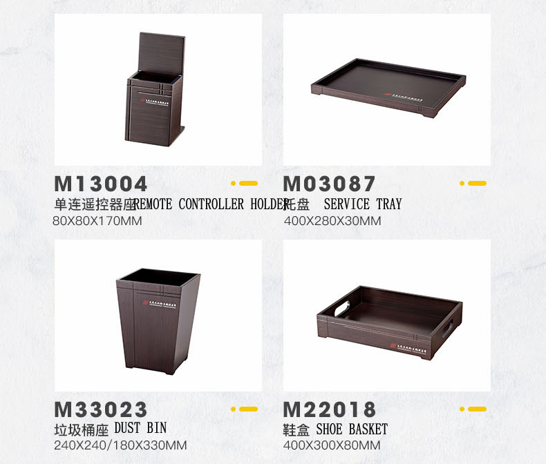 PRODUCTS:WOOD GUEST ROOM SERVICE DIRECTORY, WOOD CONFERENCE PAD, WOOD TISSUE BOX HOLDER, WOOD AMENITY DISPLAY, WOOD CANDY DISH, WOOD TEA BOX, WOOD REMOTE CONTROLLER HOLDER, WOOD TOWEL DISH, WOOD NO SMOKING SIGN, WOOD AMENITY TRAY, WOOD VASE, WOOD CUP MAT, WOOD ASH TRAY HOLDER, WOOD SIGN, WOOD MAGAZINE RACK, WOOD STATIONARY BOX, WOOD COAT BRUSH, WOOD SHOE HORN, WOOD SHOE BASKET, WOOD SERVICE TRAY, WOOD DUST BIN, WOOD ICE BUCKET HOLDER