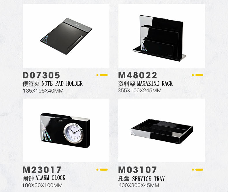 PRODUCTS:WOOD GUEST SERVICE DIRECTORY, WOOD AMENITY BOX, WOOD TISSUE BOX HOLDER, WOOD NOTE PAD HOLDER, WOOD MAGAZINE RACK, WOOD ALARM CLOCK, WOOD SERVICE TRAY