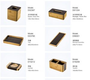 PRODUCTS:WOOD TOWEL DISH, WOOD AMENITY BOX, WOOD TISSUE BOX COVER, WOOD ICE BUCKET HOLDER, WOOD VASE, WOOD SHOE TRAY, WOOD SERVICE TRAY, WOOD DUST BIN, WOOD CUP PAD, WOOD TEA BOX, WOOD SOAP DISH