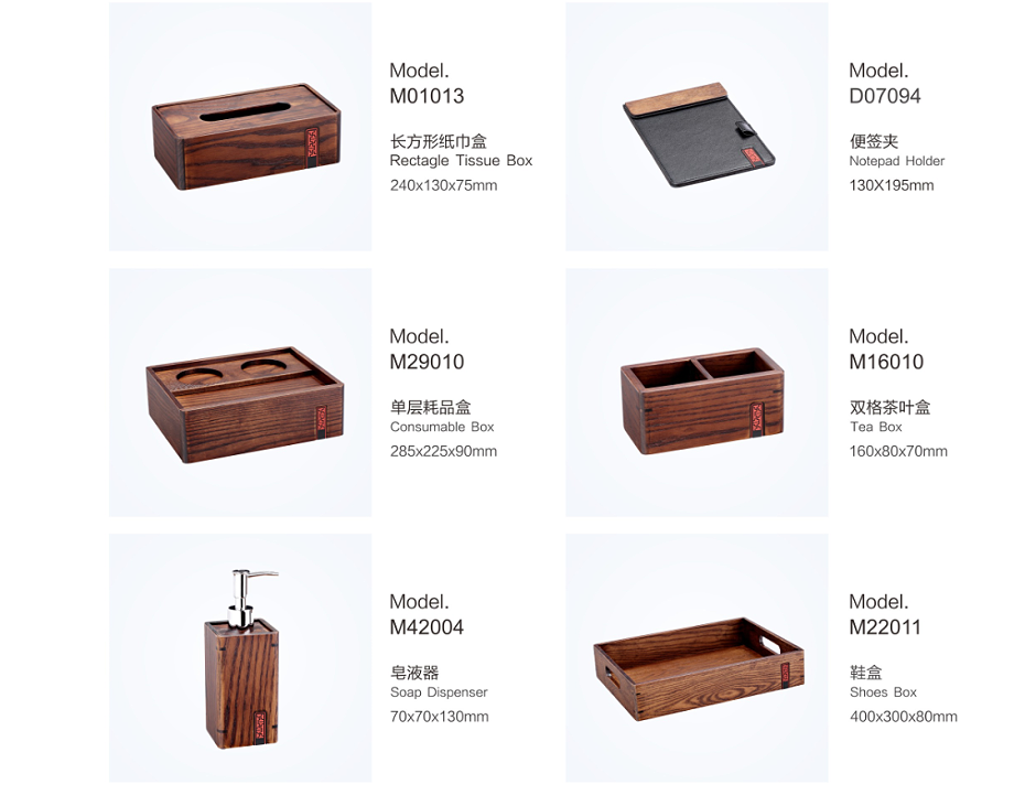 PRODUCTS:WOOD GUEST ROOM SERVICE DIRECTORY, WOOD CONFERENCE PAD, WOOD TISSUE BOX HOLDER, WOOD AMENITY DISPLAY, WOOD CANDY DISH, WOOD TEA BOX, WOOD REMOTE CONTROLLER HOLDER, WOOD TOWEL DISH, WOOD NO SMOKING SIGN, WOOD AMENITY TRAY, WOOD VASE, WOOD CUP MAT, WOOD ASH TRAY HOLDER, WOOD SIGN, WOOD MAGAZINE RACK, WOOD STATIONARY BOX, WOOD COAT BRUSH, WOOD SHOE HORN, WOOD SHOE BASKET, WOOD SERVICE TRAY, WOOD DUST BIN, WOOD ICE BUCKET HOLDER