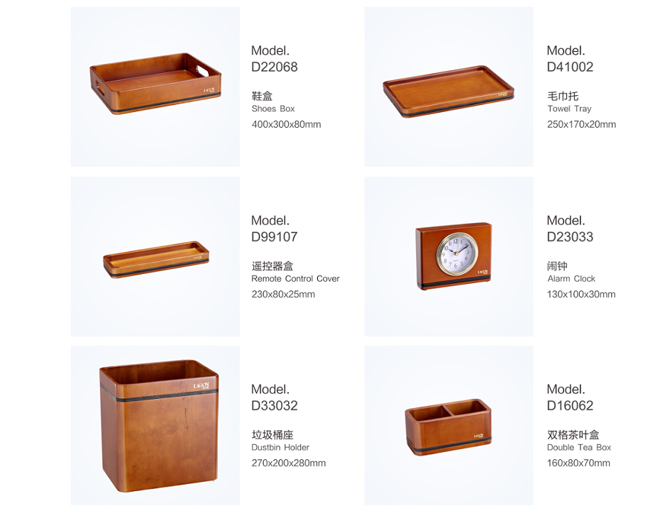 PRODUCTS:WOOD TOWEL DISH, WOOD AMENITY BOX, WOOD TISSUE BOX COVER, WOOD ICE BUCKET HOLDER, WOOD VASE, WOOD SHOE TRAY, WOOD SERVICE TRAY, WOOD DUST BIN, WOOD CUP PAD, WOOD TEA BOX, WOOD SOAP DISH