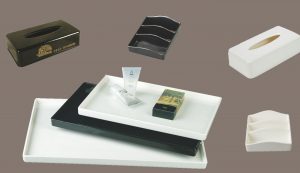 PRODUCTS:ACRCYLIC TISSUE BOX COVER, ACRYLIC AMENITY DISPLAY, ACRYLIC TOWEL DISPLAY TRAY, ACRYLIC SOAP DISH, AMENITY REMOTE CONTROLLER HOLDER